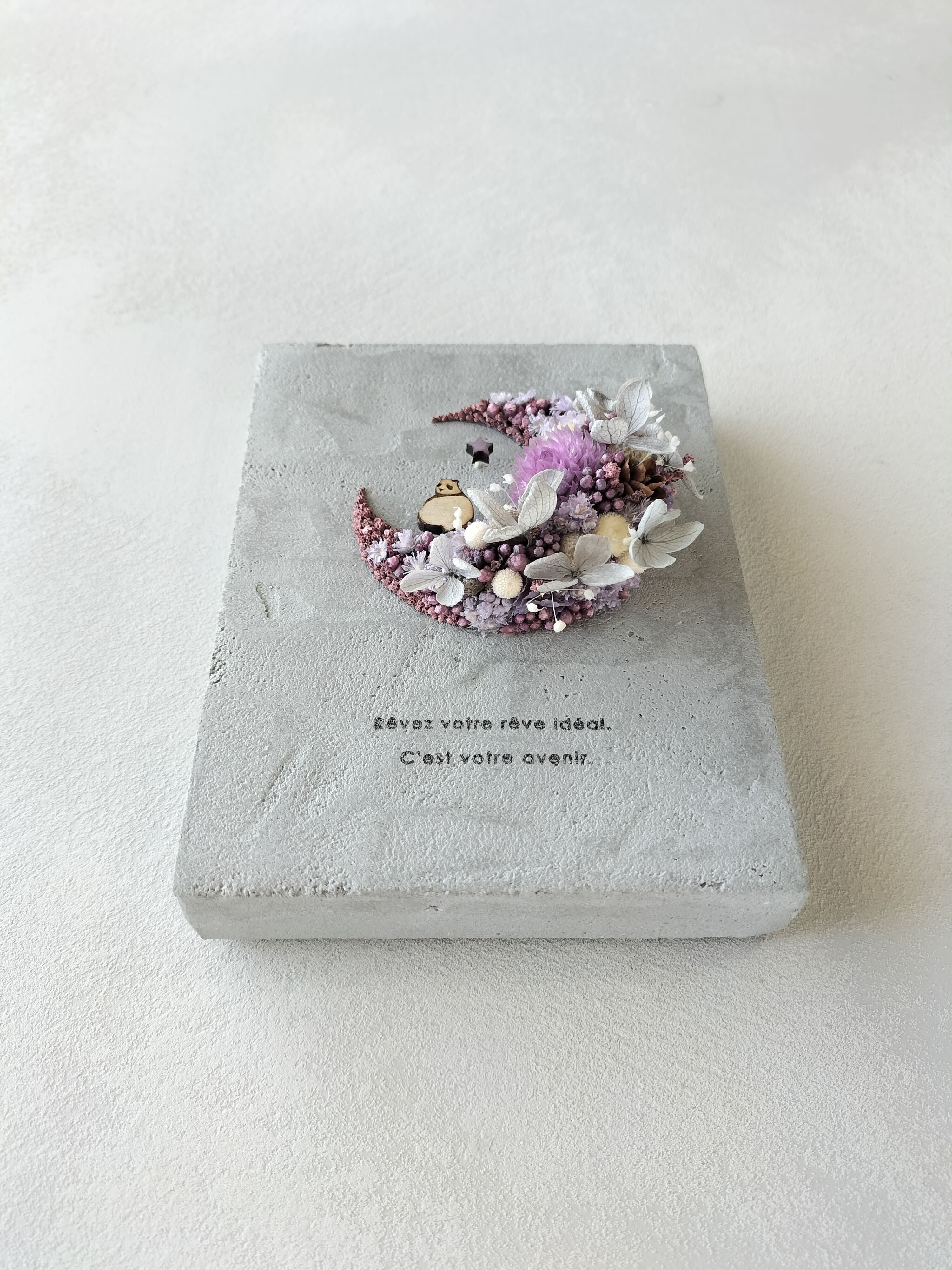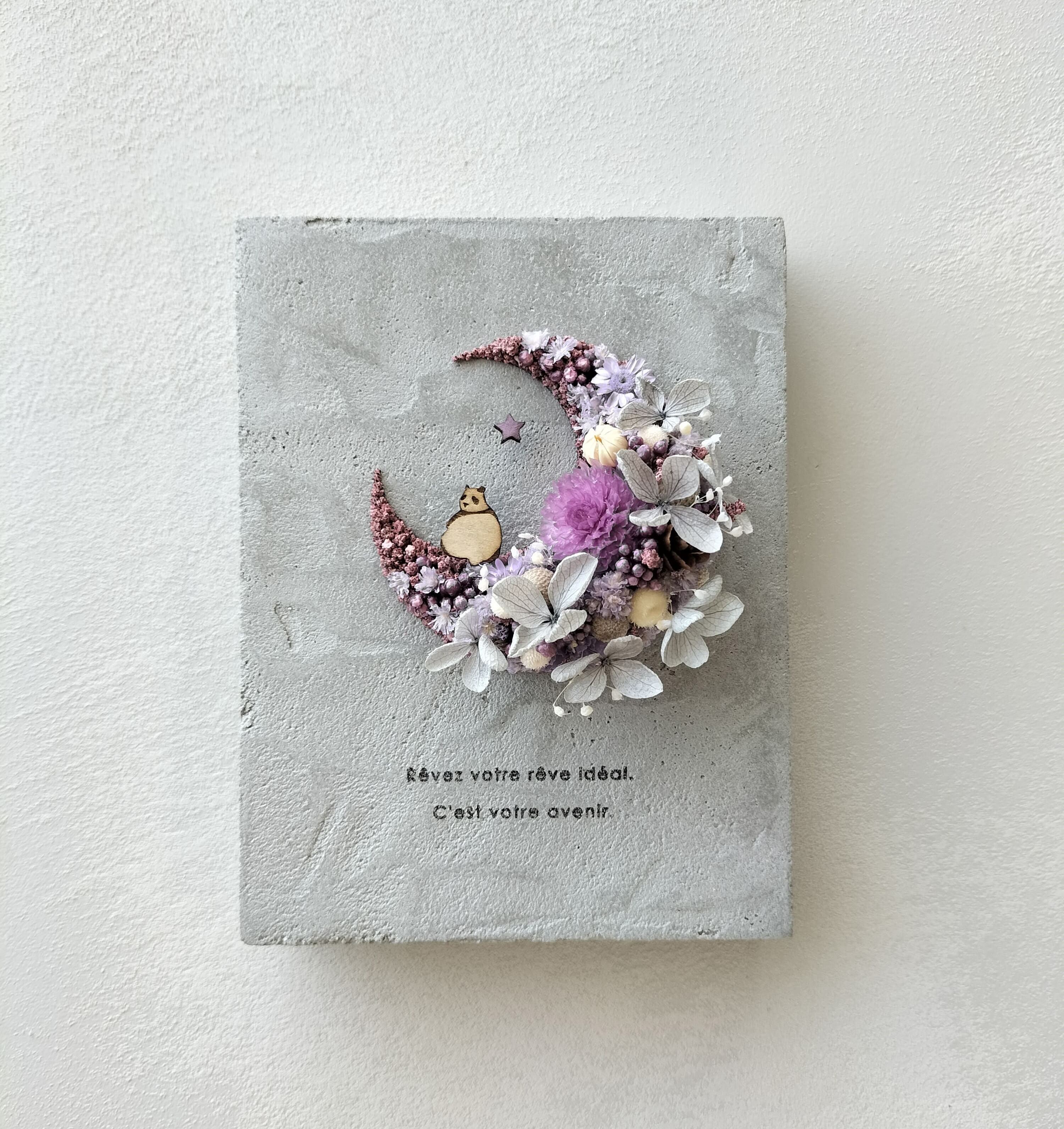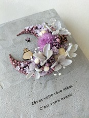 愛されている三日月をドライフラワーでかたどったボタニカルボードです。