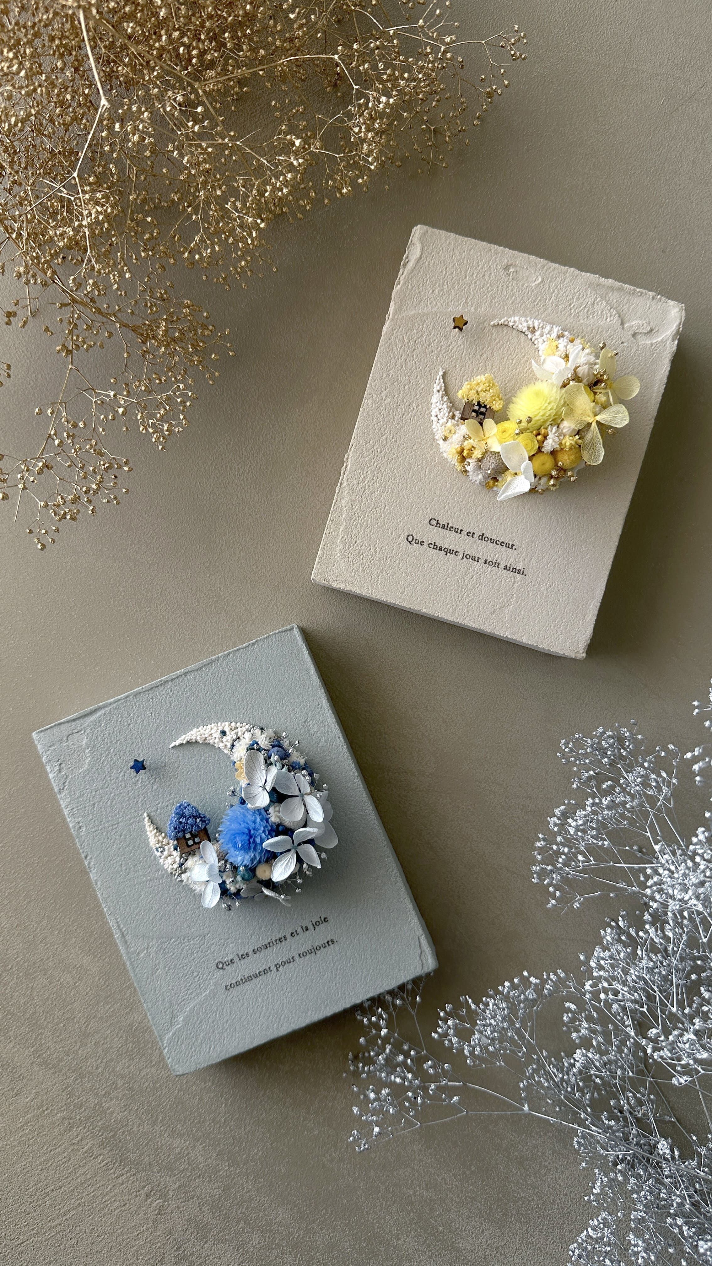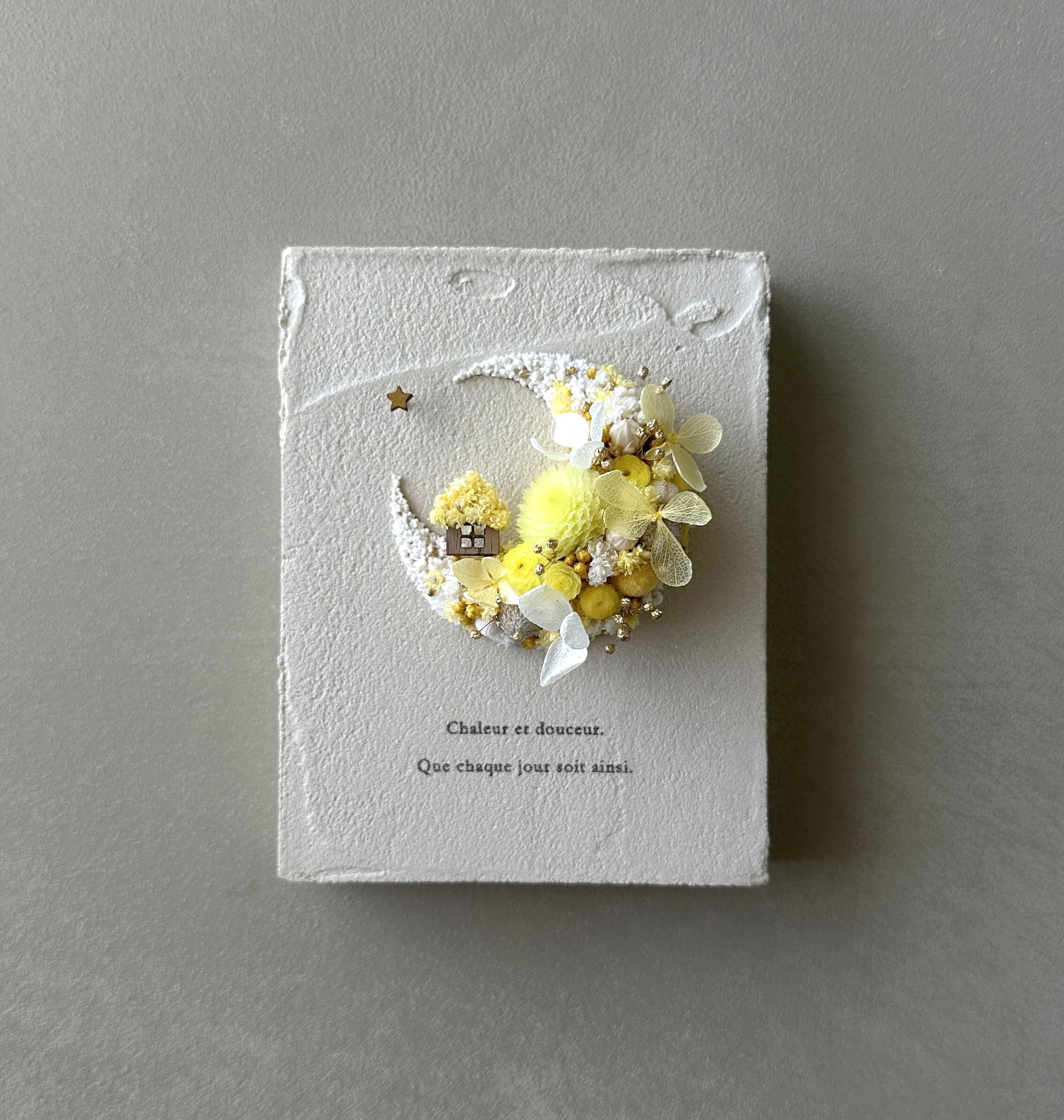 愛されている三日月をドライフラワーでかたどったボタニカルボードです。