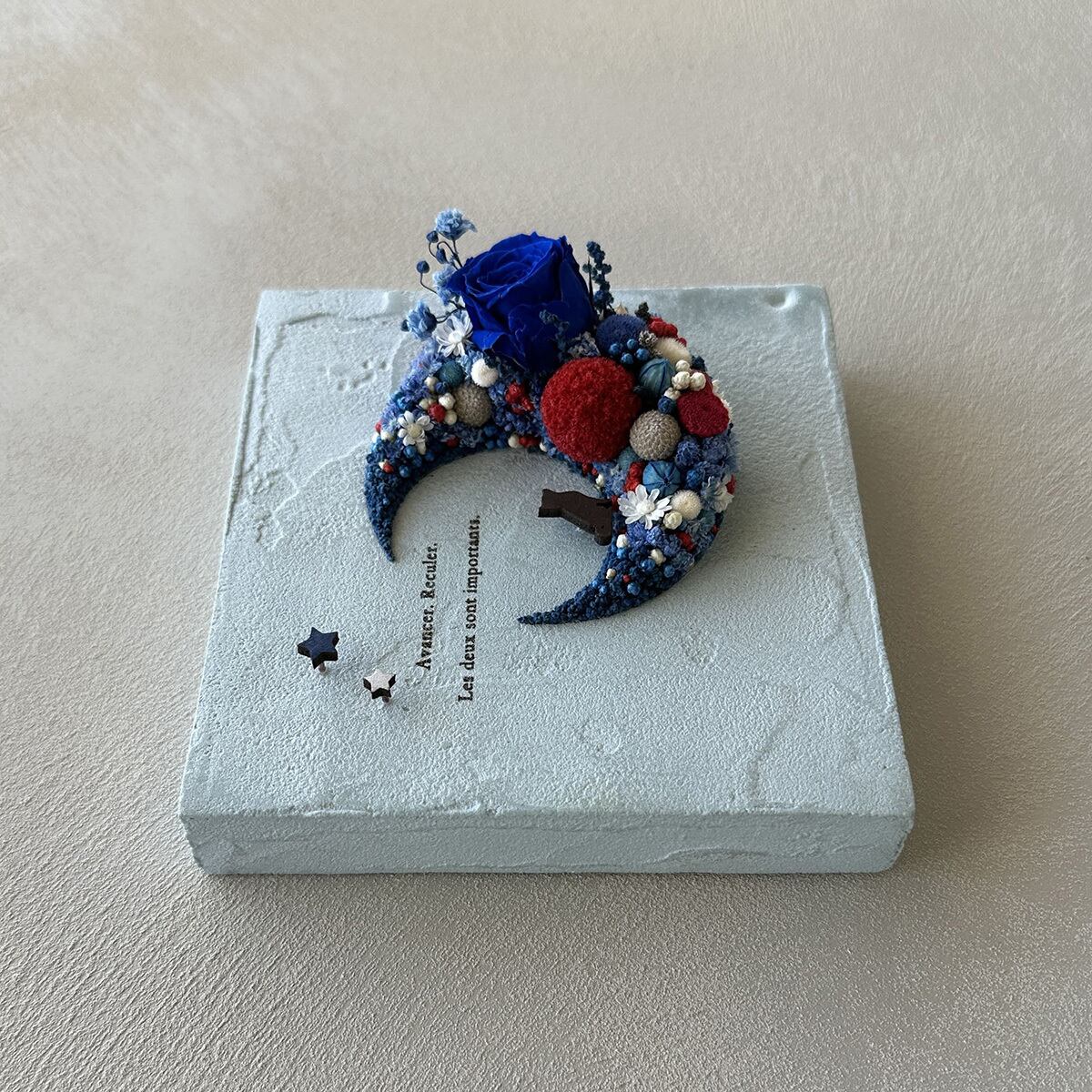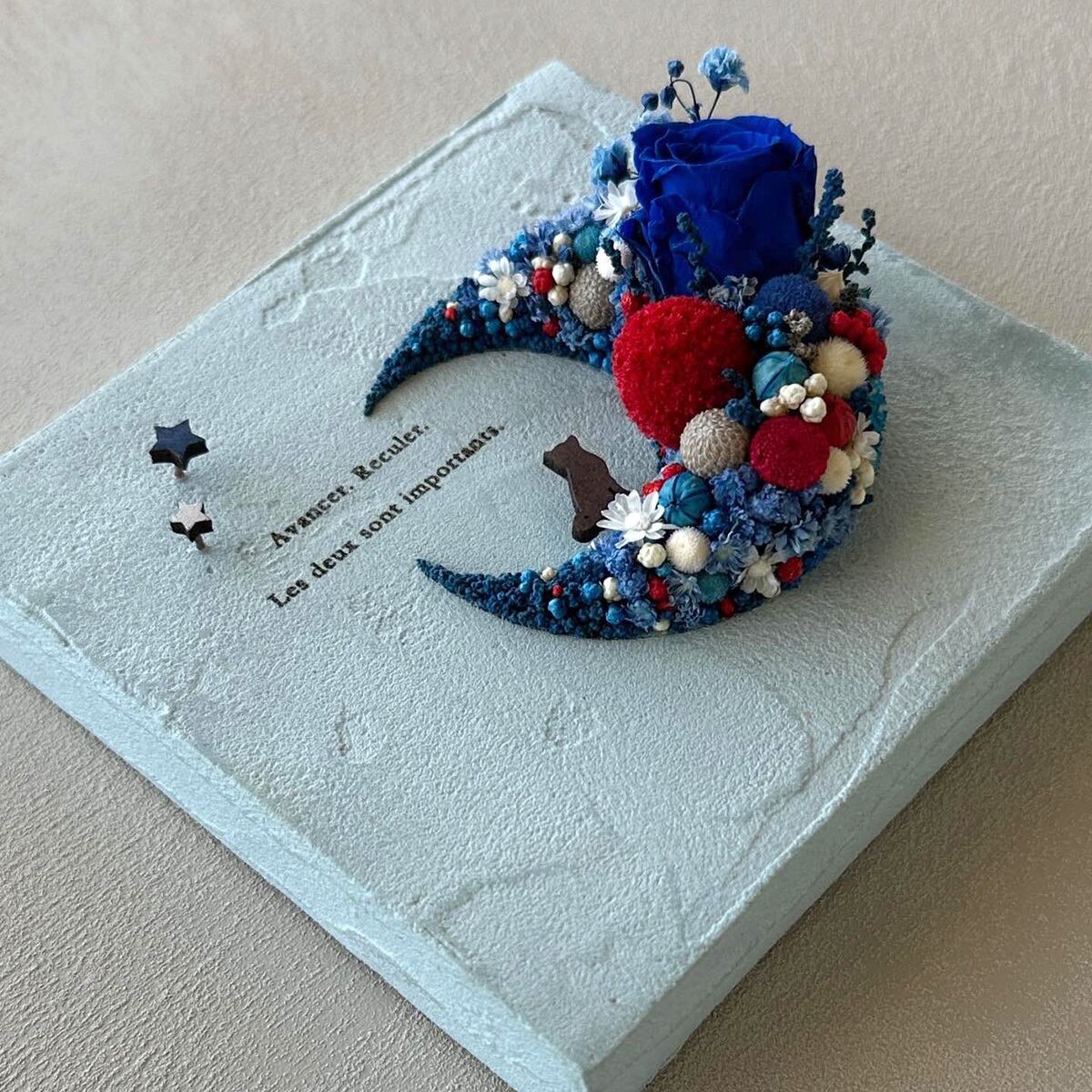 愛されている三日月をドライフラワーでかたどったボタニカルボードです。