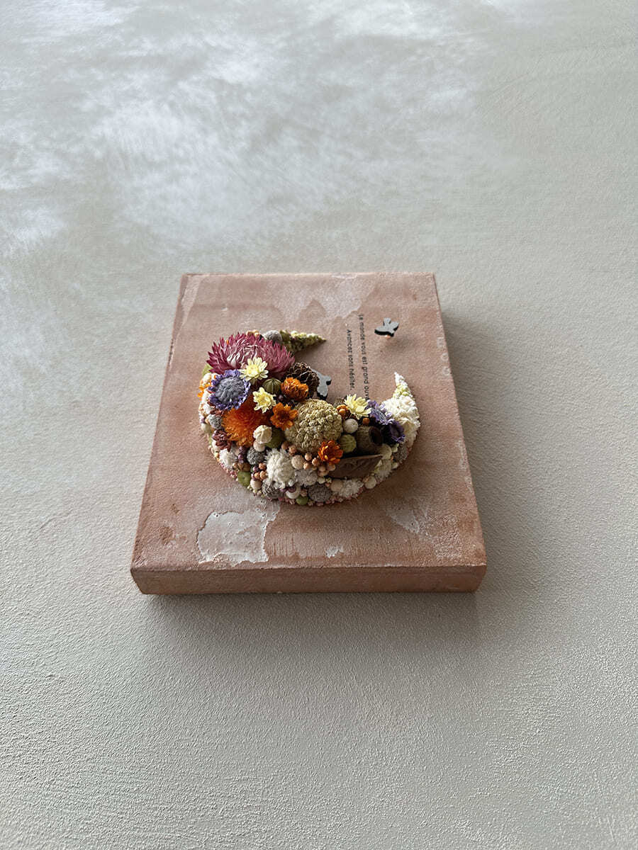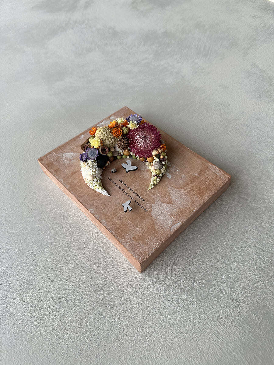 愛されている三日月をドライフラワーでかたどったボタニカルボードです。