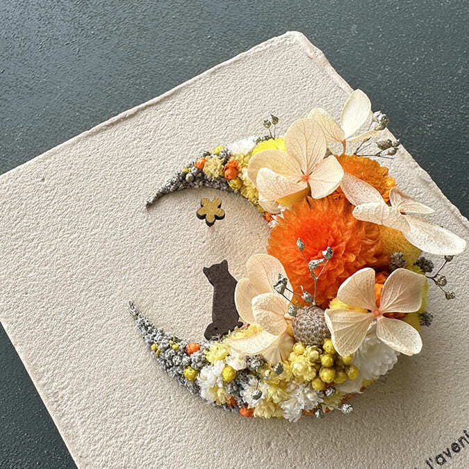 愛されている三日月をドライフラワーでかたどったボタニカルボードです。