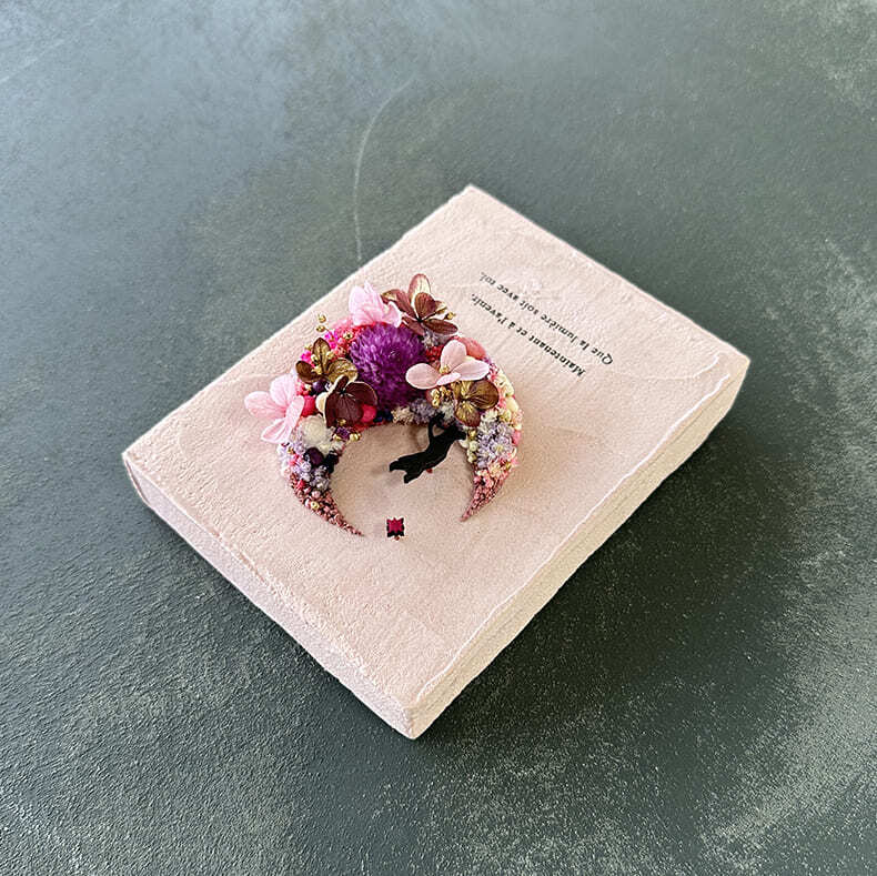 愛されている三日月をドライフラワーでかたどったボタニカルボードです。