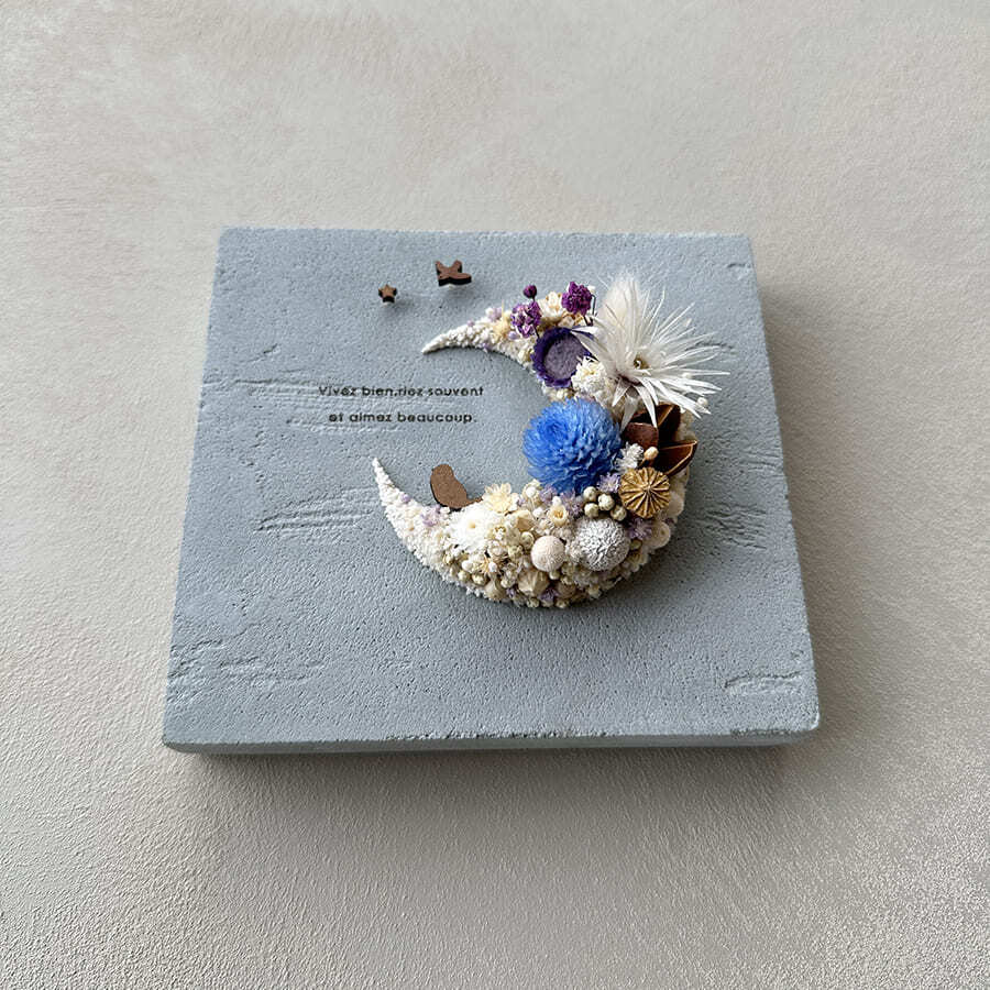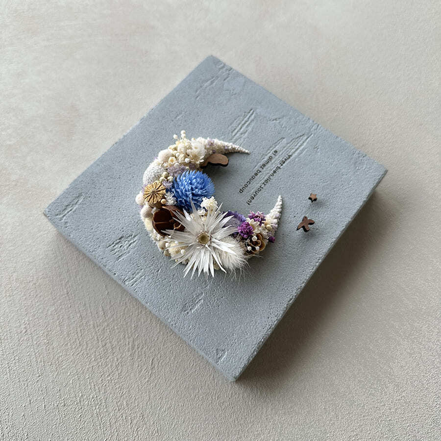 愛されている三日月をドライフラワーでかたどったボタニカルボードです。