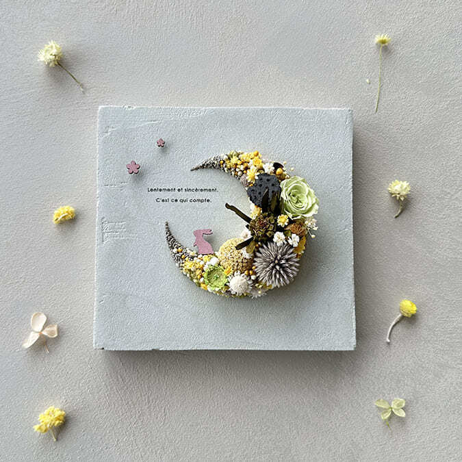 愛されている三日月をドライフラワーでかたどったボタニカルボードです。