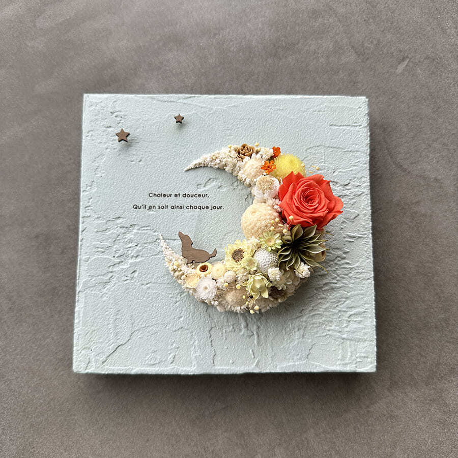 愛されている三日月をドライフラワーでかたどったボタニカルボードです。