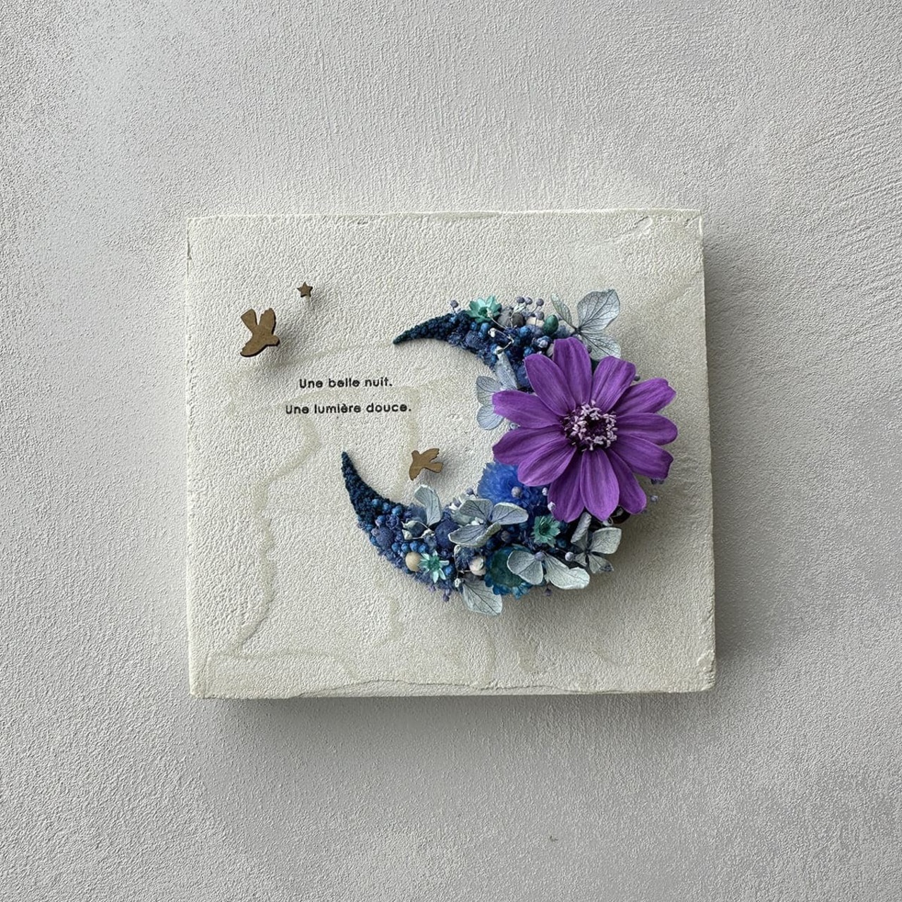 愛されている三日月をドライフラワーでかたどったボタニカルボードです。