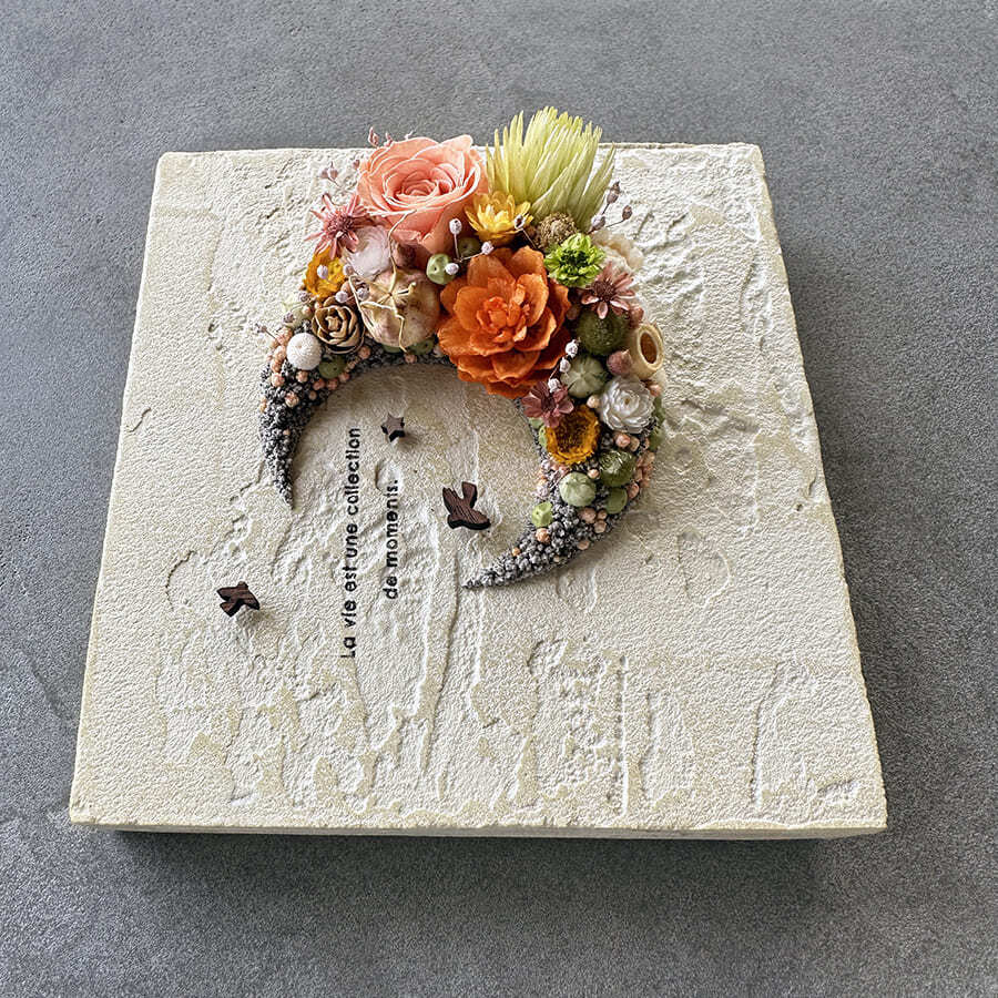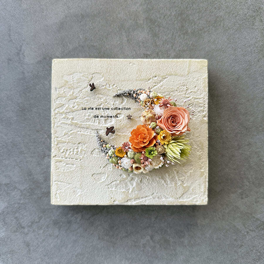 愛されている三日月をドライフラワーでかたどったボタニカルボードです。