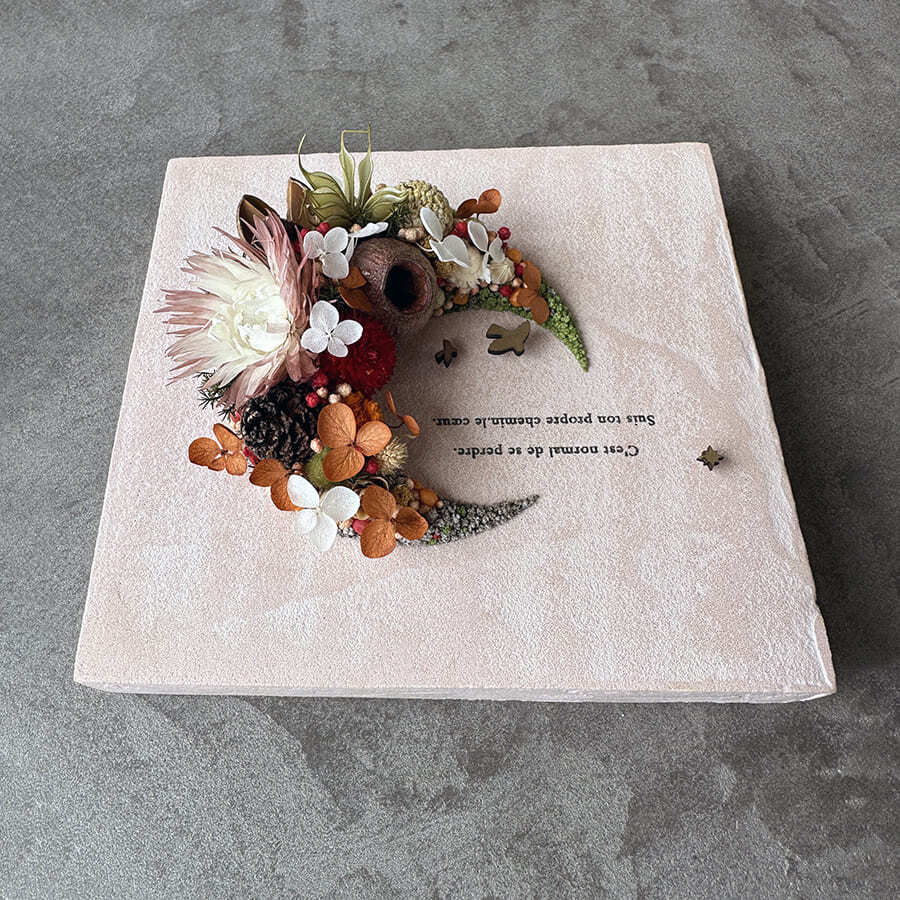 愛されている三日月をドライフラワーでかたどったボタニカルボードです。