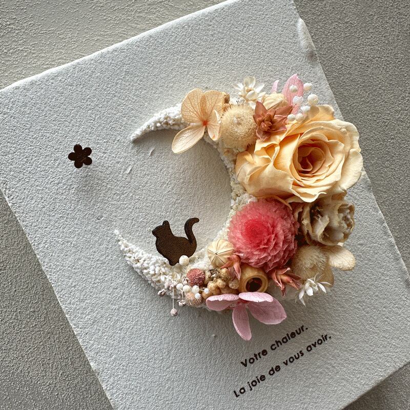 #ボタニカルアート #ネコ #CAT #キャット #MOON #お月様 #ギフト #壁掛け #雑貨 #ボタニカル #ドライフラワー #フラワー #木工雑貨 #SGDs #一人暮らしインテリア #華やか#カラフル #大人雑貨 #エントランスエリア #壁掛け雑貨 #玄関 #花言葉 #アニマル #花ギフト
