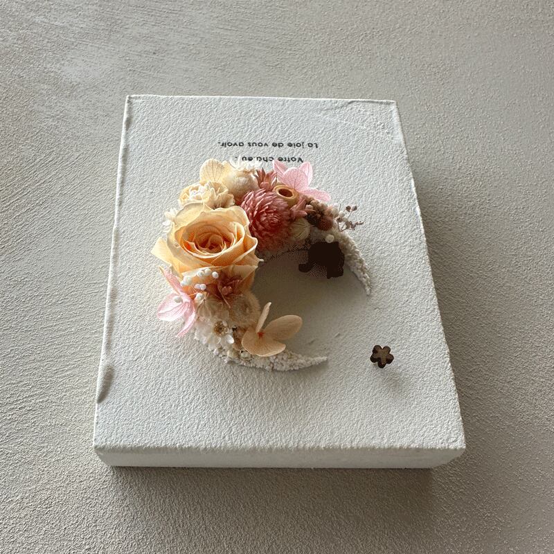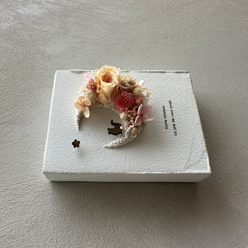 愛されている三日月をドライフラワーでかたどったボタニカルボードです。
