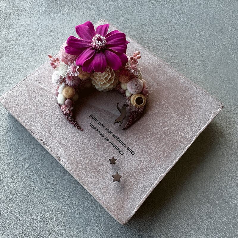 #ボタニカルアート #ネコ #猫 #CAT #MOON #お月様 #ギフト #壁掛け #雑貨 #ボタニカル #ドライフラワー #フラワー #木工雑貨 #SGDs #一人暮らしインテリア #華やか#カラフル #大人雑貨 #エントランスエリア #壁掛け雑貨 #玄関 #花言葉 #花ギフト