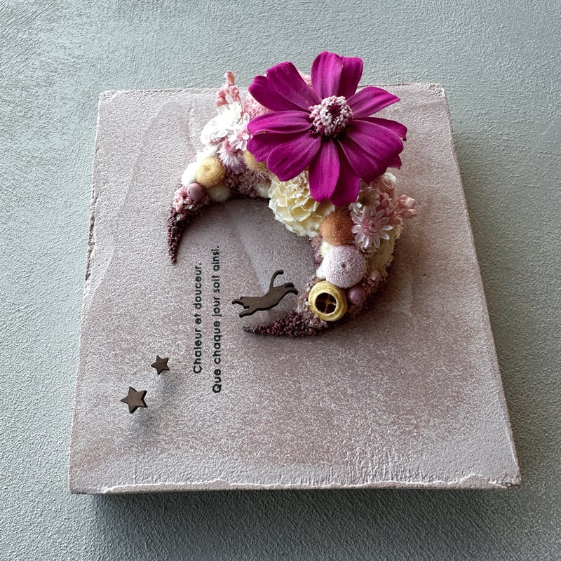 愛されている三日月をドライフラワーでかたどったボタニカルボードです。