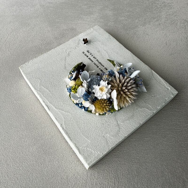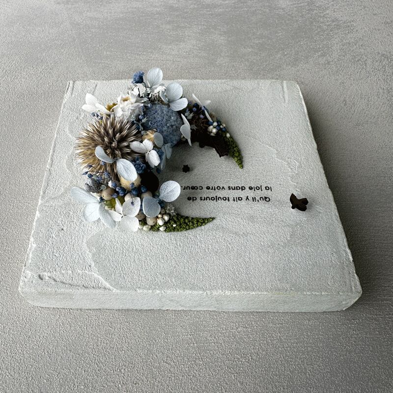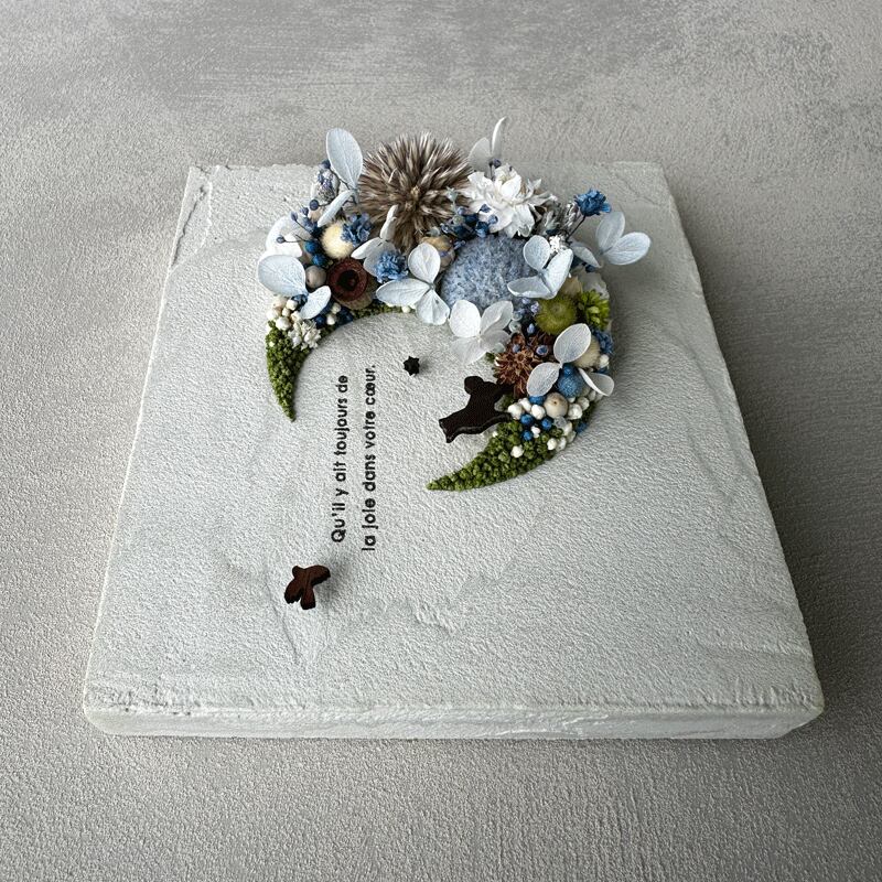 愛されている三日月をドライフラワーでかたどったボタニカルボードです。