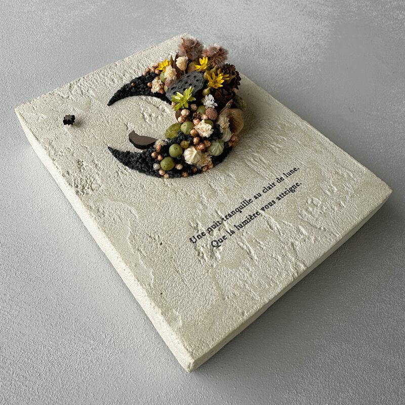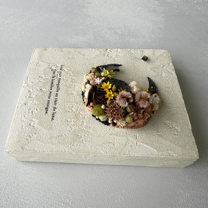 愛されている三日月をドライフラワーでかたどったボタニカルボードです。