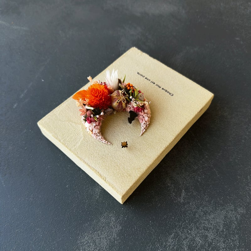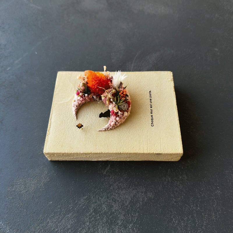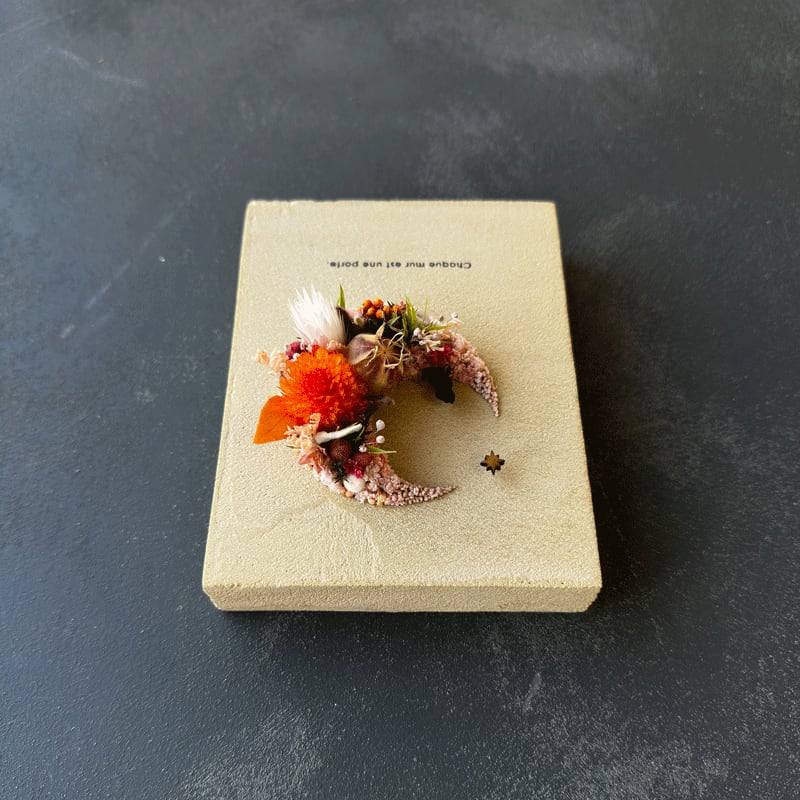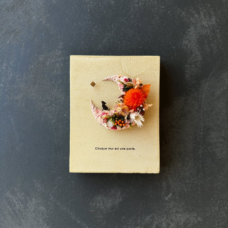 愛されている三日月をドライフラワーでかたどったボタニカルボードです。