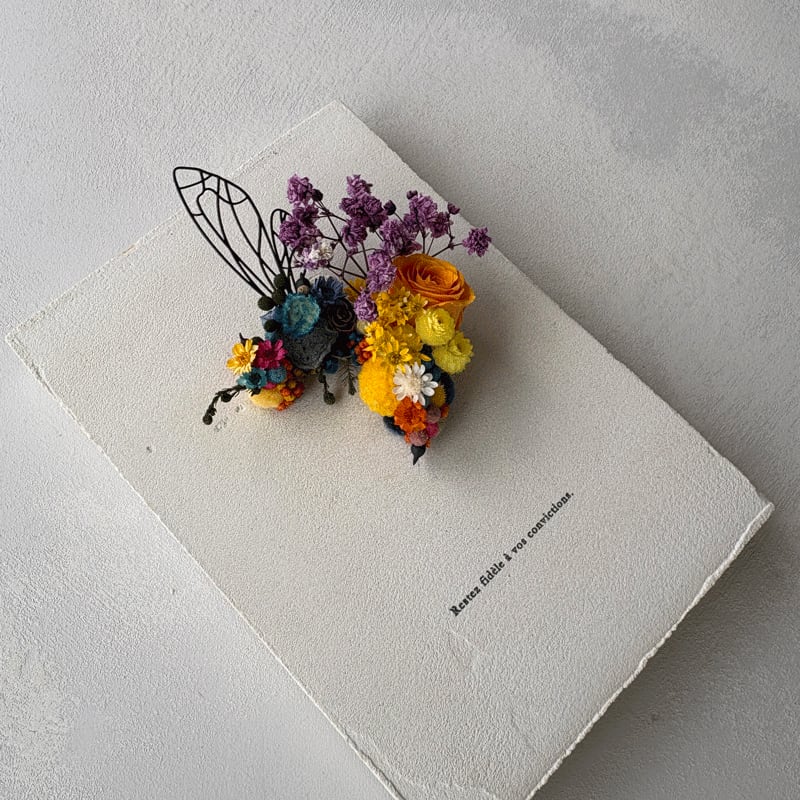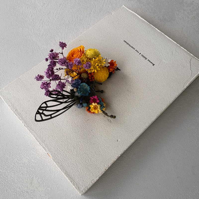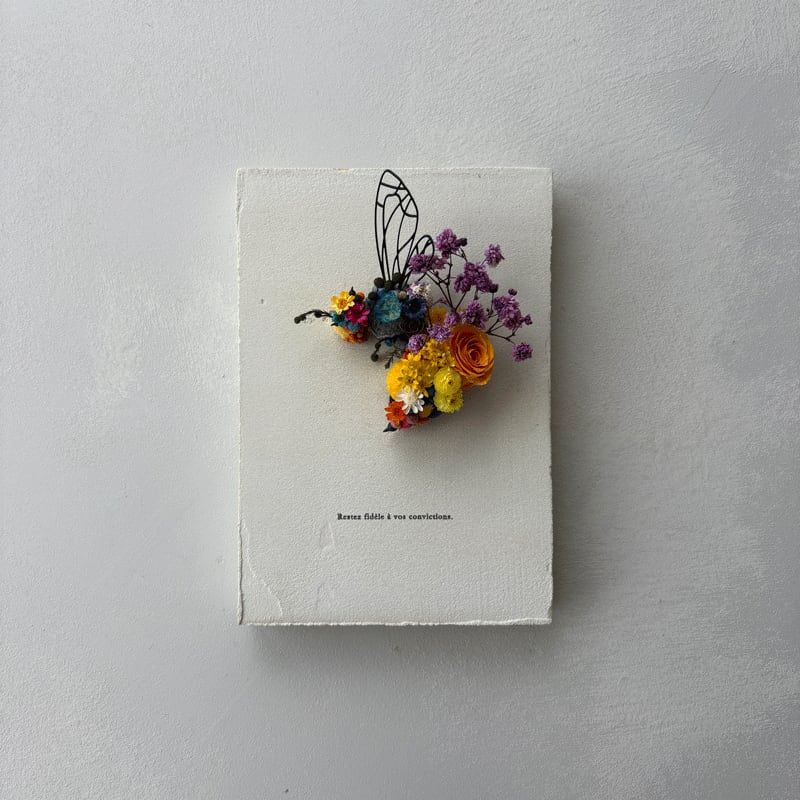 迫力のあるオオスズメバチをモチーフにしたドライフラワーアート