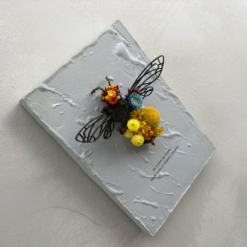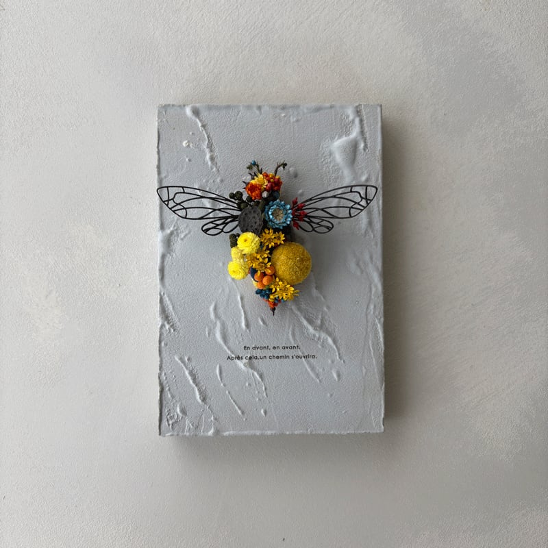 迫力のあるオオスズメバチをモチーフにしたドライフラワーアート