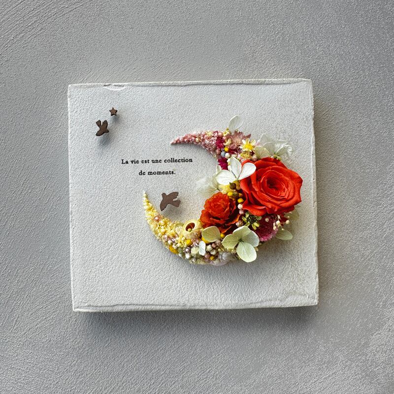 愛されている三日月をドライフラワーでかたどったボタニカルボードです。