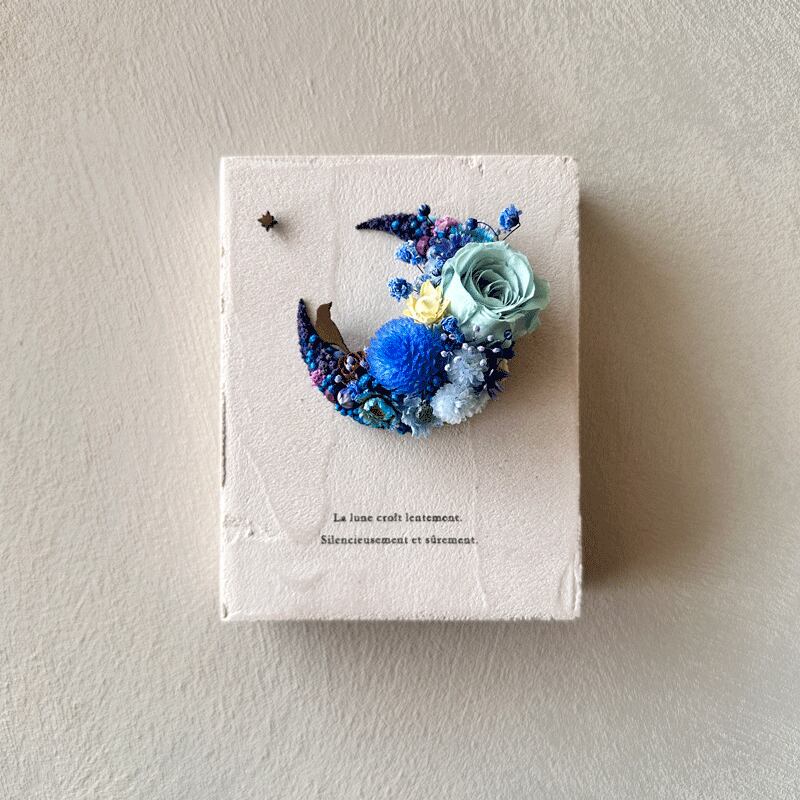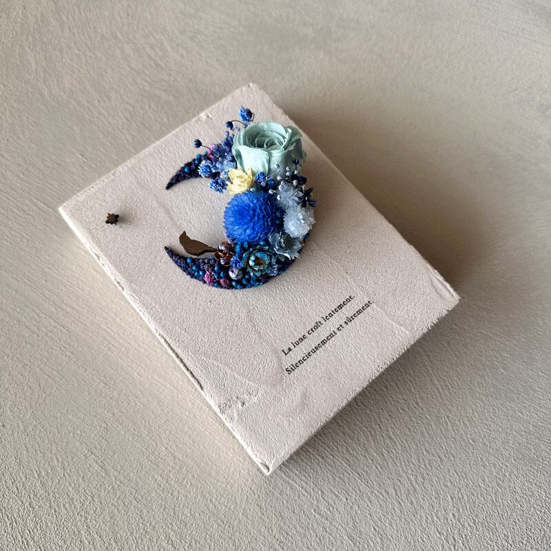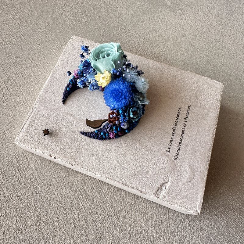 愛されている三日月をドライフラワーでかたどったボタニカルボードです。