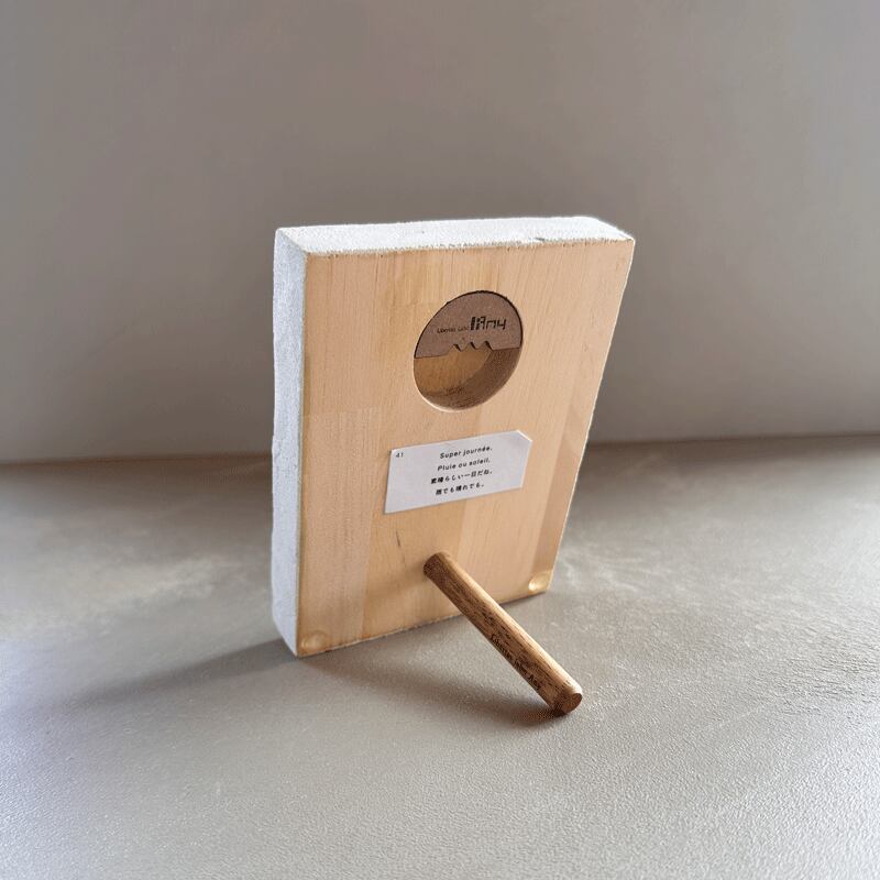 作品背面の穴にスタンド脚を挿し込むことで