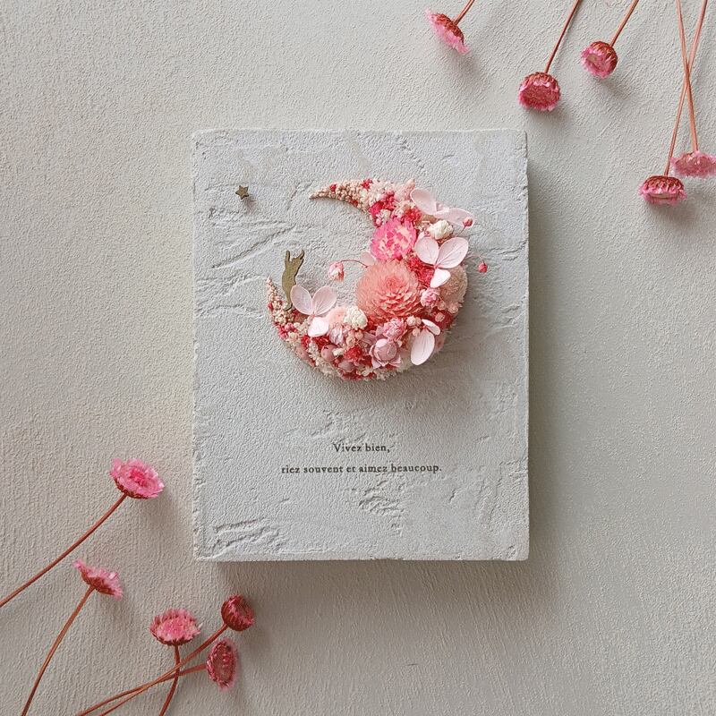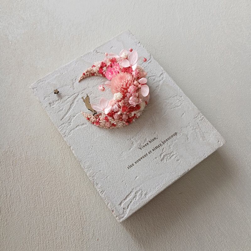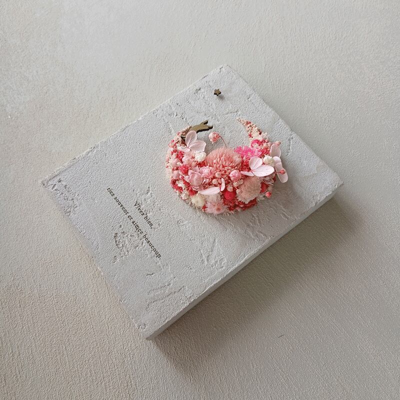 愛されている三日月をドライフラワーでかたどったボタニカルボードです。
