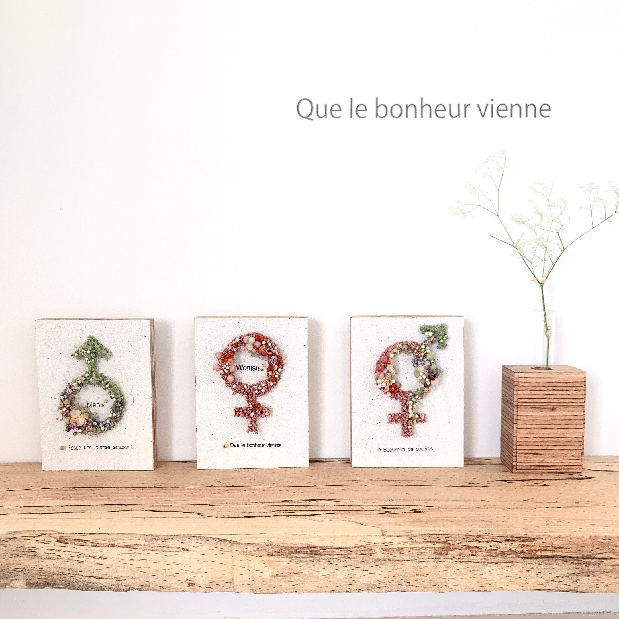 ドライフラワー等をオリジナルアレンジしたピクトグラム・ボタニカルボードです。