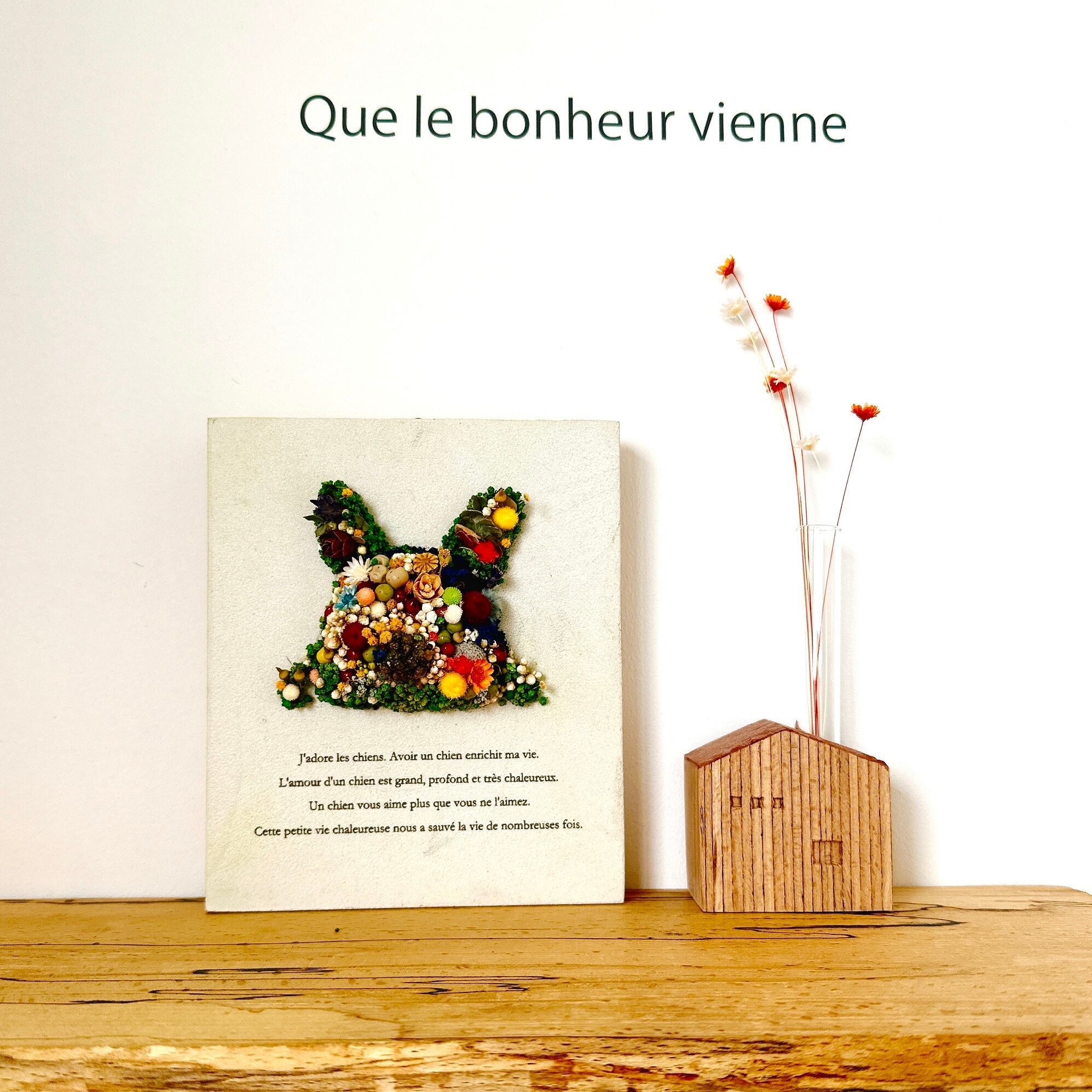 #フレブル #French Bulldog #Frenchie #フレンチブルドッグ #動物 #愛犬 #dog #アニマルデザイン #ボタニカルアートボード #ドライフラワー #プリザーブドフラワー #壁掛け #雑貨 #インテリア #ニュアンスカラー #木工雑貨 #SGDs #新築祝い