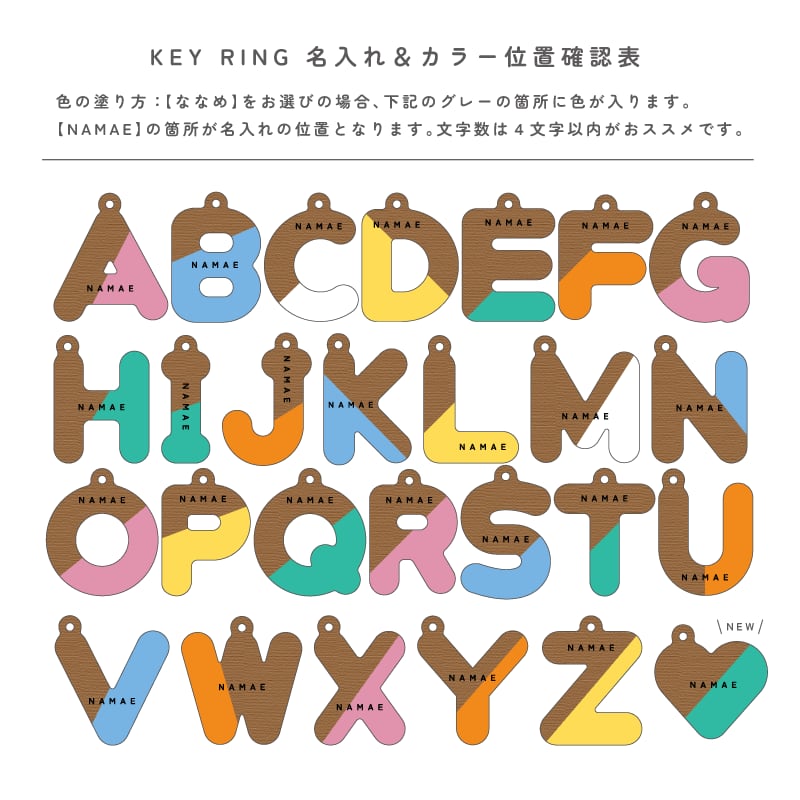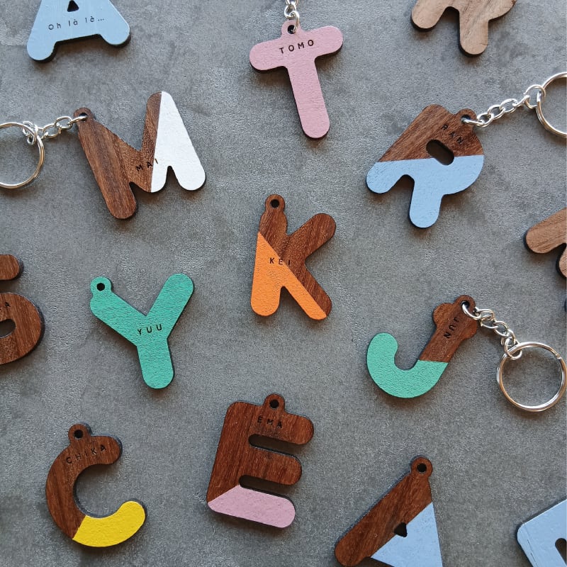 お好きなアルファベットに着色&名入れ刻印をしてお作りいたします。
