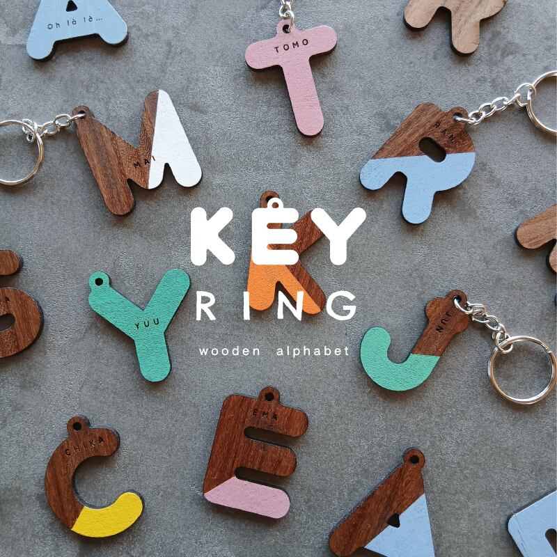 【 KEY RING 】名入れキーリング 木製 手作りキーホルダー アルファベット セミオーダー