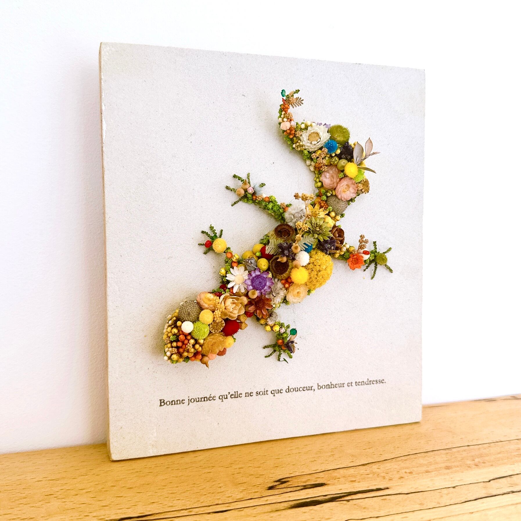 #爬虫類 #ヒョウモントカゲモドキ #トカゲ #蜥蜴 #エキゾチックアニマル #レオパードゲッコー #レオパ #フランス語 #ドライフラワー #プリザーブドフラワー #ボタニカルアート #壁掛け