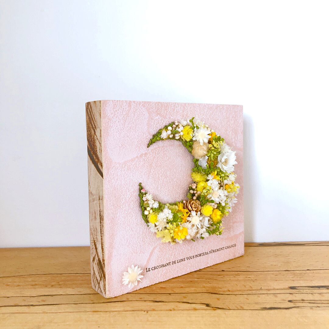 #ボタニカルアート #三日月 #月型 #MOON #お月様 #ギフト #壁掛け #雑貨 #ボタニカル #ドライフラワー #インテリア #プリザーブドフラワー #木工雑貨 #SGDs #一人暮らしインテリア #yellow #黄色い月 #大人雑貨 #エントランスエリア #壁掛け雑貨 #玄関