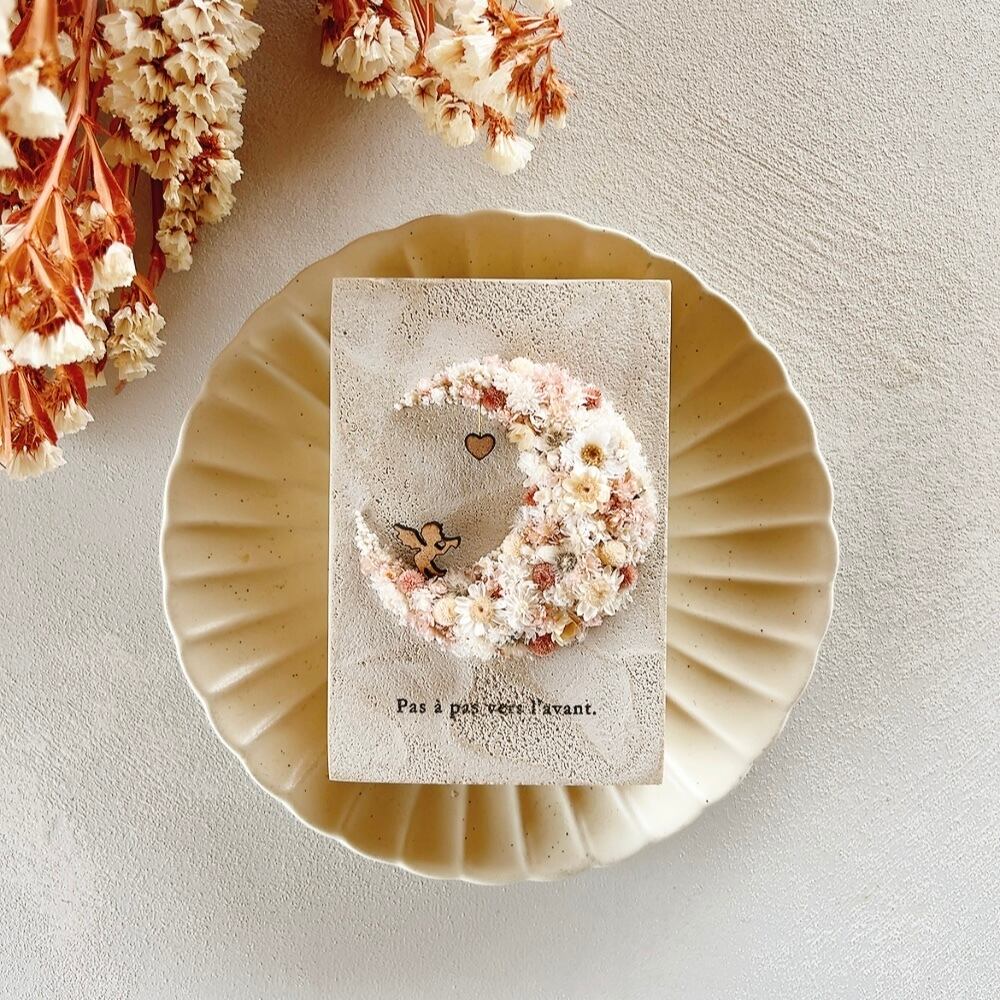 愛されている三日月をモチーフにしたボタニカルボードです。