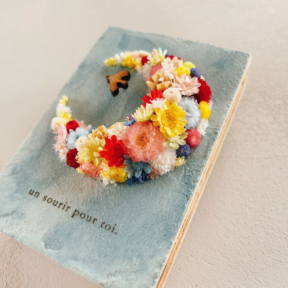#ボタニカルアート #月#小鳥 #鳥 #MOON #お月様 #ギフト #壁掛け #雑貨 #ボタニカル #ドライフラワー #インテリア #プリザーブドフラワー #木工雑貨 #SGDs #一人暮らしインテリア #華やか#カラフル #大人雑貨 #エントランスエリア #壁掛け雑貨 #玄関