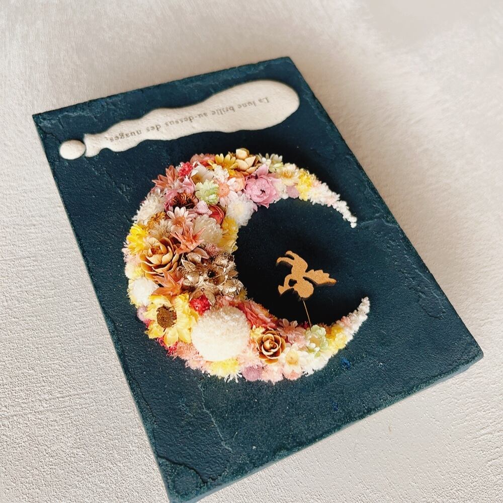 #ボタニカルアート #月#天使#エンジェル#MOON #お月様 #ギフト #壁掛け #雑貨 #ボタニカル #ドライフラワー #インテリア #プリザーブドフラワー #木工雑貨 #SGDs #一人暮らしインテリア #華やか#カラフル #大人雑貨 #エントランスエリア #壁掛け雑貨 #玄関